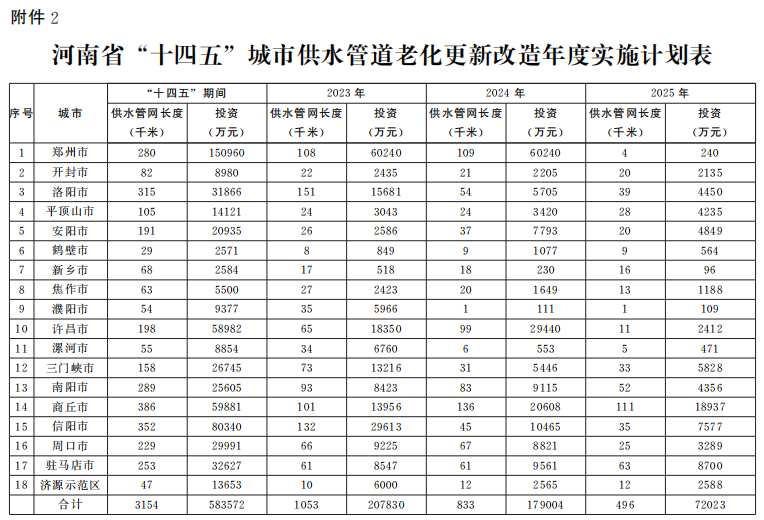 2.河南省“十四五”城市供水管道老化更新改造年度实施计划表