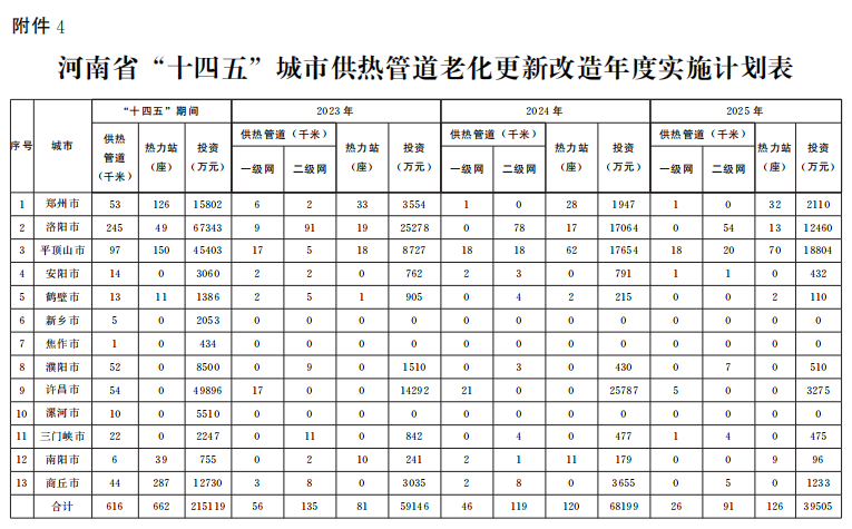 4.河南省“十四五”城市供热管道老化更新改造年度实施计划表