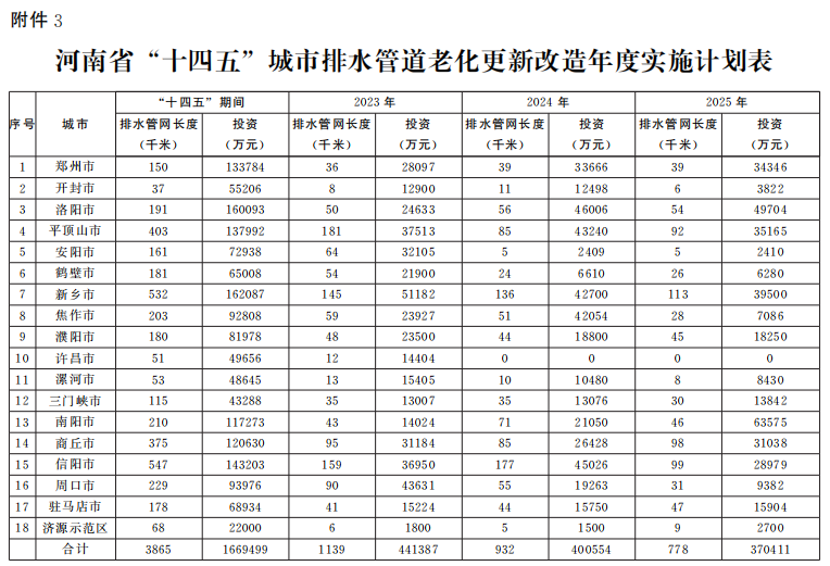 3.河南省“十四五”城市排水管道老化更新改造年度实施计划表